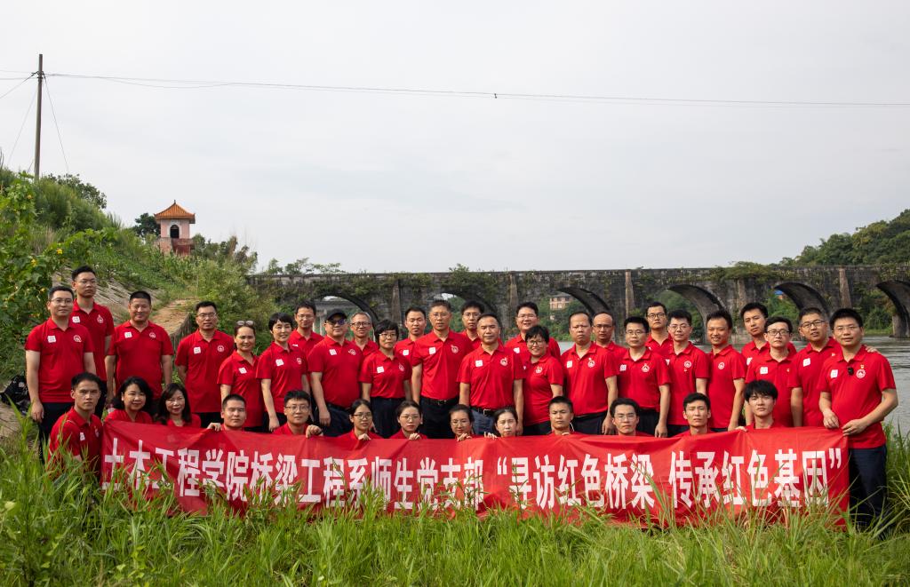 为喜迎党的二十大胜利召开,引领学院广大师生赓续革命精神,传承红色基因,7月19-20日,土木工程学院桥梁工程系师生党支部前往湘乡联合开展“寻访红色桥梁 传承红色基因”主题党日活动。院党委书记江河、院长王磊,院党委副书记黄阿明、副院长韩艳、陈伏彬、蒋田勇及师生党员、入党积极分子代表40余人近距离感受“红色桥梁”的红色印迹,激励广大师生牢记初心使命,传承红色基因,充分发挥党员的先锋模范作用。