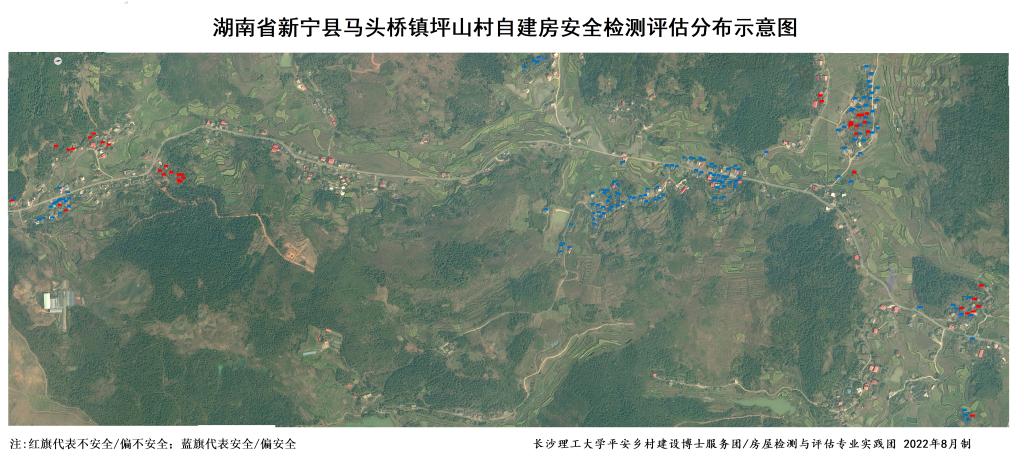 (制作《湖南省新宁县马头桥镇坪山村自建房安全检测评估分布示意图 》)
