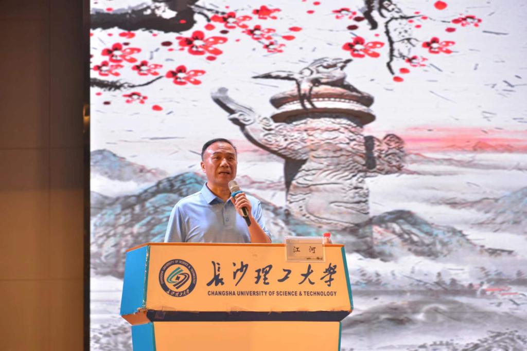 首先,江河围绕“以理想之基,铸信念之魂”的主题,向同学们介绍了在不同历史阶段,不同岗位上的五位优秀共产党员代表的先进事迹,向同学阐明了什么是理想信念,怎样坚守理想信念。他从朱德入党到成为司令员的光辉经历中,阐明了共产党的坚定的信仰、如磐的初心;通过阐述习近平总书记插队落户陕北的七年知青生活中克服跳蚤关、饮食观、劳动观、思想观实现人生蜕变的经历,勉励青年学子要将艰难困苦当作砥砺青春的“磨刀石”,把握时代机遇,把个人理想抱负要与时代发展、国家建设和人民幸福同频共振;用学院张建仁教师为师为学为人先进事迹,激励大家要爱校爱院,要有“土垒天下,木承苍穹”责任、担当和情怀;以韩艳副院长由“青年小白”成为“追风人”的蜕变历程,鼓励大家做奋斗者,勇攀科技高峰;以校“十佳大学生”、直博同济大学谭松梨的事迹,鼓舞大家心无旁骛求知问学。他还希望广大青年学生用脚步丈量祖国大地,用眼睛发现中国精神,用耳朵倾听人民呼声,用内心感应时代脉搏,把对祖国血浓于水、与人民同呼吸共命运的情感贯穿学业全过程、融汇在事业追求中。