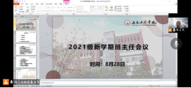 8月27日-28日,我院以年级为单位分批次线上召开了新学期第一次班主任会议。院党委副书记黄阿明及全体班主任老师参会。会议就新学期第一次班会、上学期学情分析及新学期规划、疫情防控工作、安全法制教育、重点学生帮扶、心理健康教育、学生党员发展培养等方面做出详细讲解,并就开学初的学生中的常见安全问题进行了强调,对新学期学生危机排查做了督促。