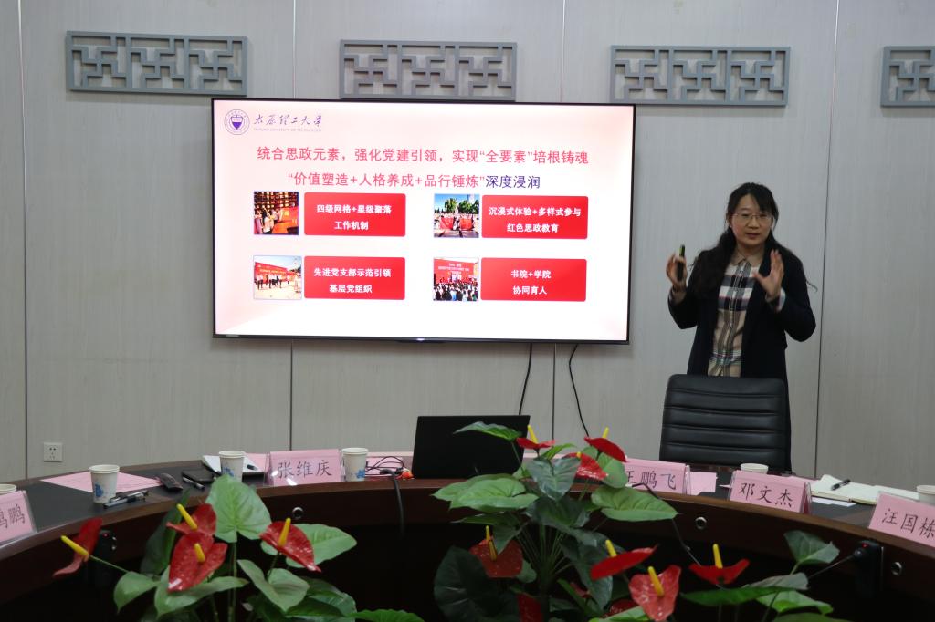 随后,陈冬华从“统合思政元素、强化党建引领、实现‘全要素’培根铸魂”三个方面介绍了太原理工大学一站式社区建设的经验。芦倩就第十五届全国结构设计竞赛赛事筹办组织情况及学院思政建设作了分享交流。