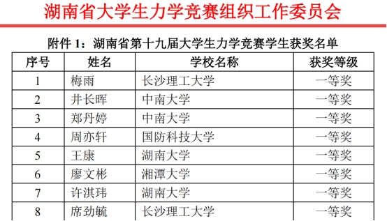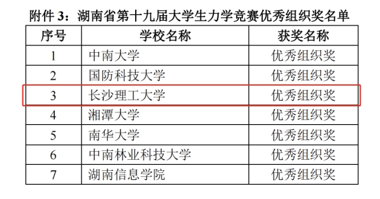 6月7日,湖南省第十九届大学生力学竞赛获奖名单公示,我校喜获一等奖6项,二等奖14项,三等奖37项,共计57项省奖,全省第一名由我校土木工程学院学子梅雨摘得。土木工程学院彭旭龙等五位教师获“优秀指导教师”,太阳成集团tyc122cc入口获“优秀组织奖”。