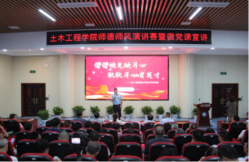 9月12日下午,为庆祝第39个教师节,推进主题教育走深走实,进一步加强全院师德师风建设,培育新时代“四有”好老师,营造“学习师德楷模、注重师德修养、塑造师德形象”的良好风气,土木学院“正风铸魂,立德树人”师德师风演讲赛暨微党课宣讲在工科二号楼B302报告厅举行。