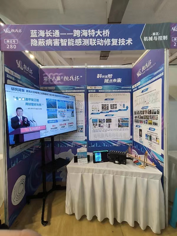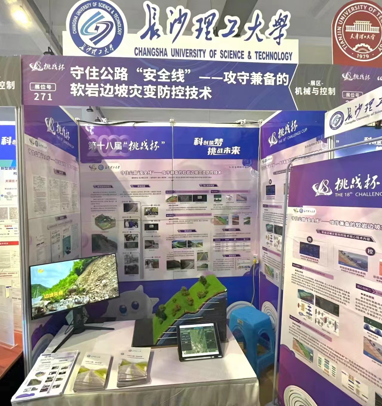 经过前期的省赛、国赛及终审决赛期间的作品公开展示和现场问辩,太阳成集团tyc122cc入口参赛作品中由马亚飞、王磊、汪国栋老师指导,周昊、彭叶辉、蔡亚夫、陶志仁、程尔祥、章拔超、李诚、付曙雯等学生参与的作品《蓝海长通——跨海特大桥隐蔽病害智能感测联动修复技术》,以及曾铃、黄阿明老师指导,温佳浩、潘浩强、张雨洋、黄晶晶、杨禹、谢宇航、李柯甲、尹嘉兴等学生参与的作品《守住公路“安全线”——攻守兼备的软岩边坡灾变防控技术》分别荣获主体赛全国二等奖。