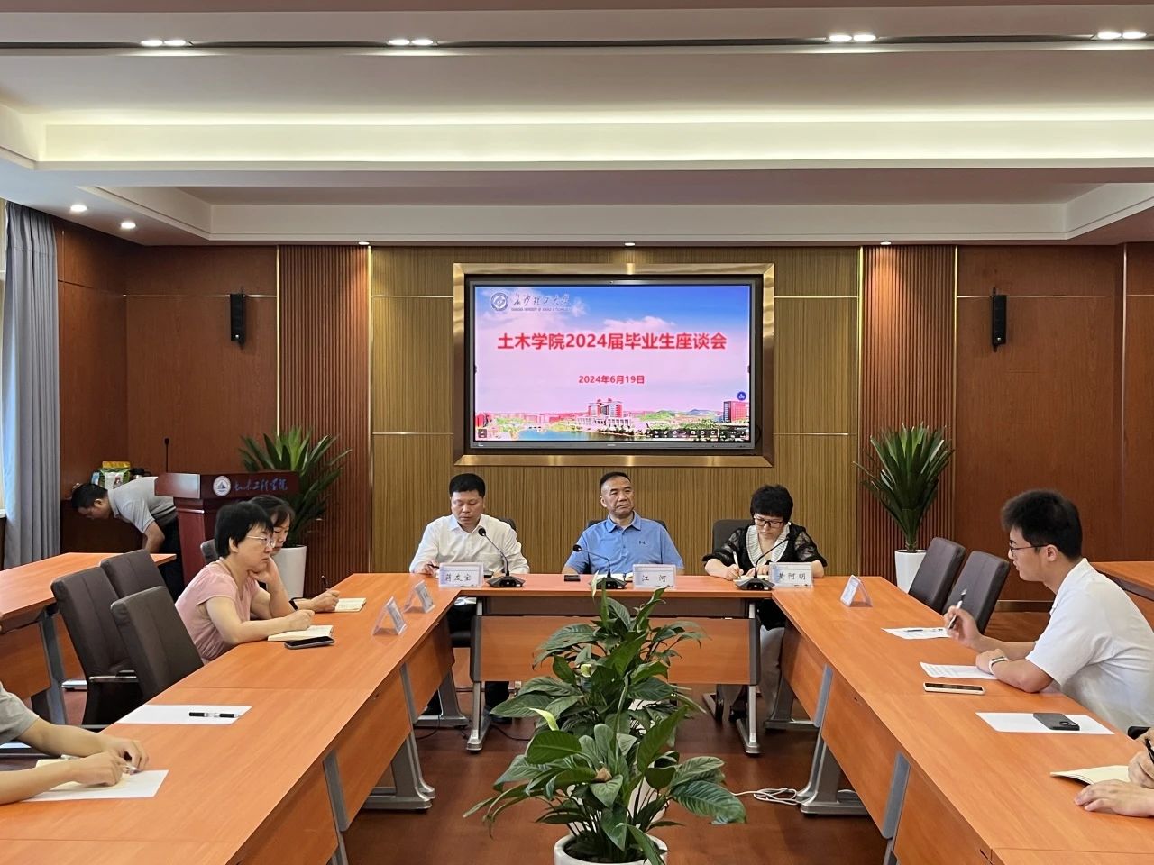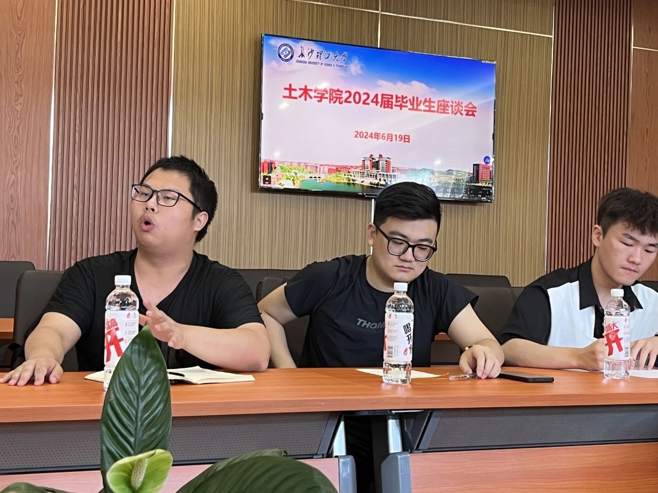 6月19日,土木工程学院在工二A304举办2024届毕业生座谈会。土木学院江河书记、黄阿明副书记、蒋友宝副院长、付果副院长、科研办禹丽娥老师、教务办陈丽君老师、学工办汪国栋老师、刘文成老师、邓文杰老师、2024届本科生、研究生毕业生代表参加本次座谈会。