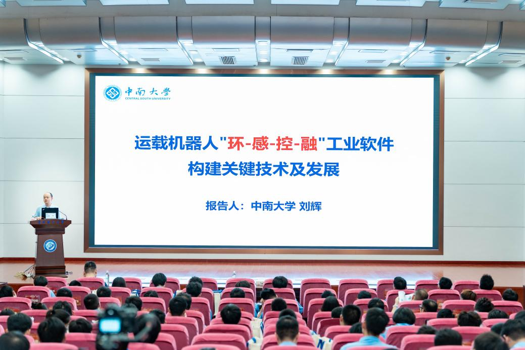中南大学教授刘辉作了《运载机器人“环-感-控-融”工业软件构建关键技术及发展》的报告。刘辉在轨道交通装备智能制造、智能运载机器人等领域深耕多年,取得了一系列具有创新性和影响力的研究成果。他在报告中对运载机器人相关技术进行了深入讲解与分析。在互动交流环节中,学生们积极提问,刘辉逐一细致解答,进一步深化了在场师生对该领域关键问题的理解。