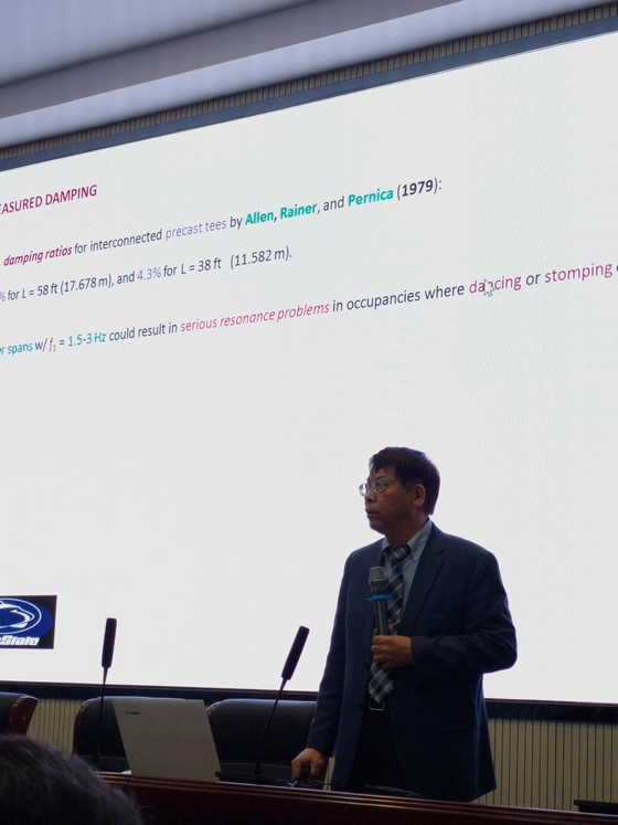 2019年12月12日下午4点,受土木工程学院邀请,美国宾夕法尼亚州立大学陈幼佳教授莅临太阳成集团tyc122cc入口云塘校区工科二号楼B302学术报告中心,为全院师生作了题为《Research progression and practical applications of floor vibration》(楼板振动的研究进展与实际应用)的学术报告。报告会由土木工程学院副院长蒋友宝教授主持,院长李传习教授、副院长陈伏彬以及刘哲锋、李红利、陈伟、陈逵、卜乐奇、吴研等老师与研究生共120余人参与了本次学术交流会。