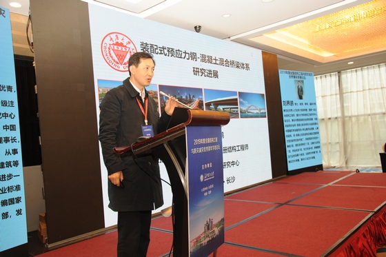 重庆大学刘界鹏教授的报告题目是《装配式预应力钢-混凝土混合桥梁体系研究进展》,分享了他在装配式组合桥梁体系方面的初步研究成果。