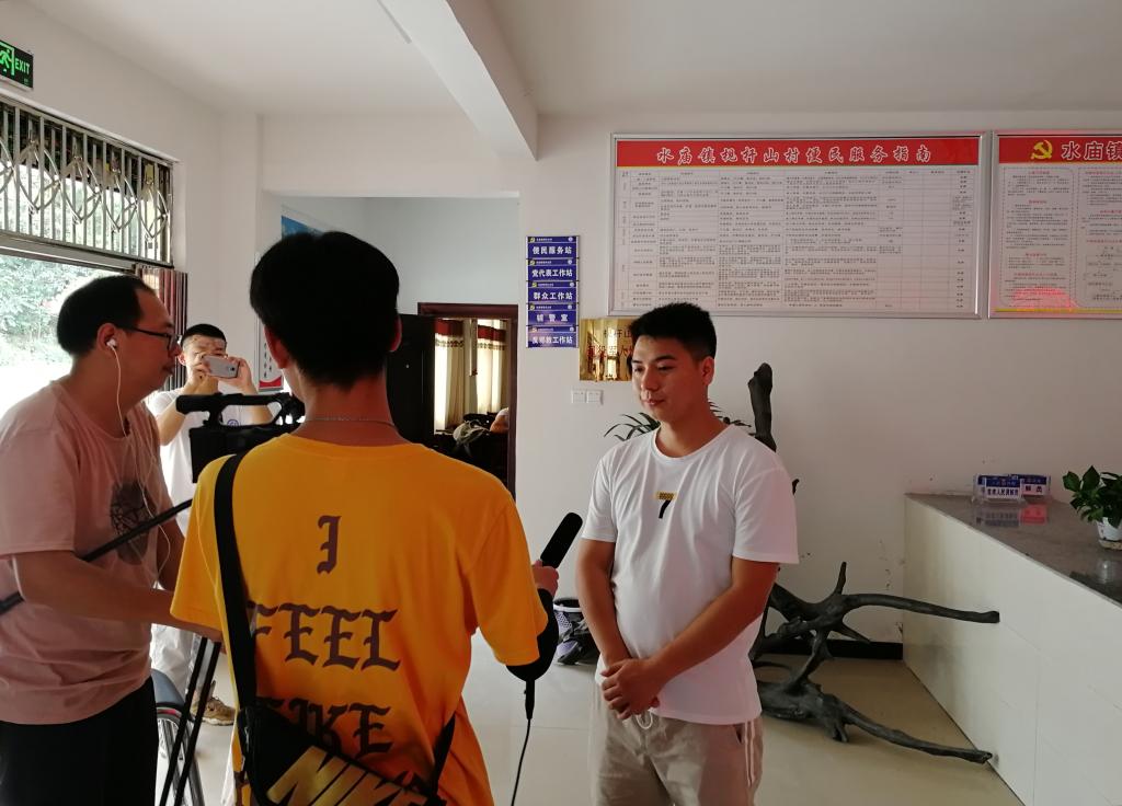 会后,枧杆山村村支书杨忠祥、村民杨家锐、四年级学生杨慧珊、枧杆山村就读中山大学研究生杨秋艳以及博士团团长李唐、团队成员郭恒良等人接受了新宁电视台记者采访。