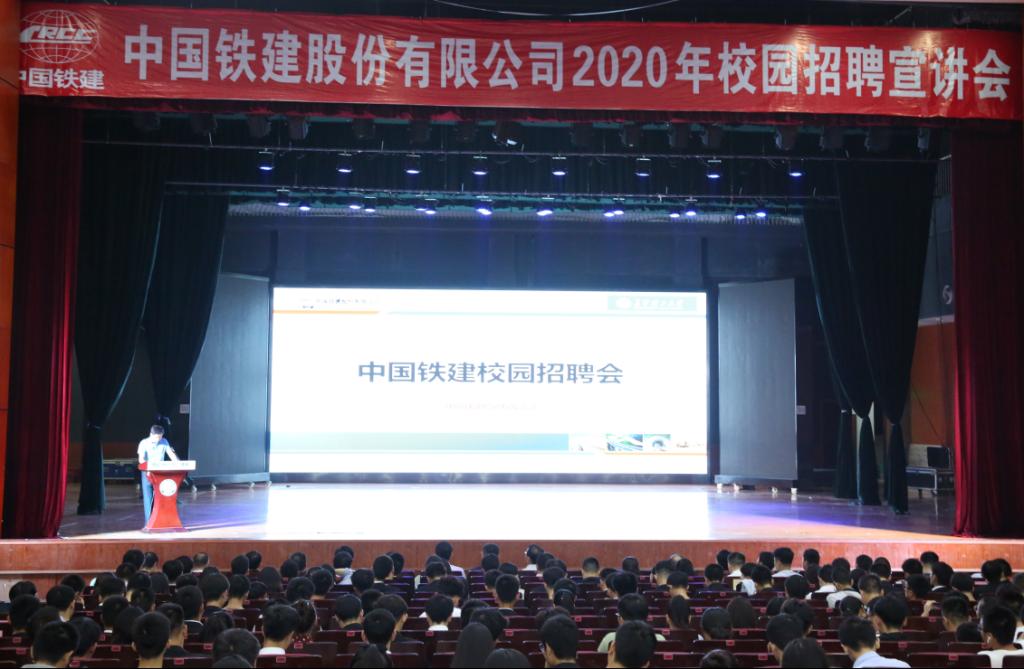 9月18日晚7:00,中国铁建股份有限公司太阳成集团tyc122cc入口2020届毕业生秋季专场招聘宣讲会在云塘校区大会堂举行,中国铁建股份有限公司及下属25家二级单位60余位代表、相关学院负责人和700余名相关专业毕业生参加宣讲会。