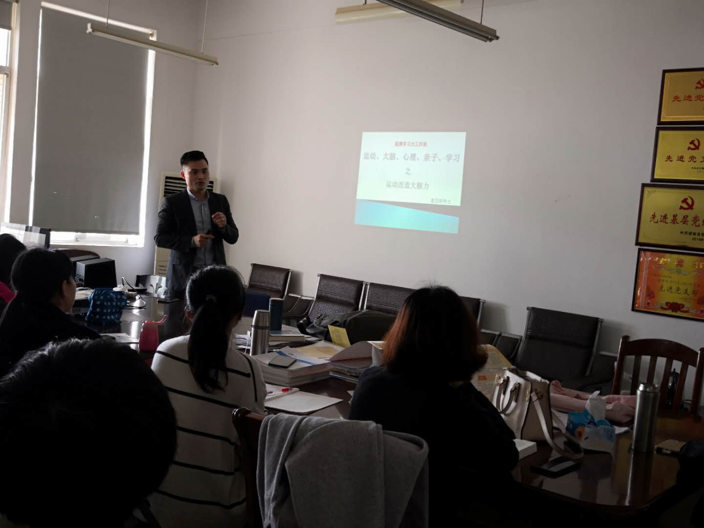 唐雪松主任会上介绍了课程设计、教学过程、课堂管理等基本规范,着重介绍了课堂教学行为“十要七不要”,如:遵守教学纪律,杜绝教学事故;管理课堂纪律;严格考核课程;禁止骚扰学生;禁止违反高校教师职业道德,最后强调了课堂教学的重要性,提高个人责任感和师德修养。结束文件学习后,党支部书记董国朝博士作了关于运动改造大脑的学习讲座。董书记结合自己及身边亲朋好友的实例,介绍了运动的重要性,比如:运动可以提高大脑记忆力和创造力、降低学生暴力、减轻压力和焦虑感、解决抑郁症、对抗成瘾、增强自信和提高注意力、延缓衰老和预防老年痴呆症。话题引起了激烈讨论,董博士指出运动可以抵抗烟瘾和酒瘾,建议男老师想抽烟的时候跳绳5分钟,运动可以提高注意力、记忆力和创造力,将其应用到学生学习管理和孩子教育中,鼓励他们运动,健身又健脑,从而提高学习积极性和效率。
