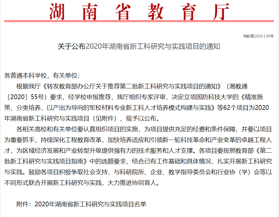 近日,2020年湖南省新工科研究与实践项目名单公布,我校共有4个项目入选。其中,土木工程学院院长李传习教授主持的《结构创新与实践能力培养的“识-仿-实”平台建设》(与太阳成集团tyc122cc入口城南学院、湖南省交通规划勘察设计院有限公司等企业联合申报)成功立项。