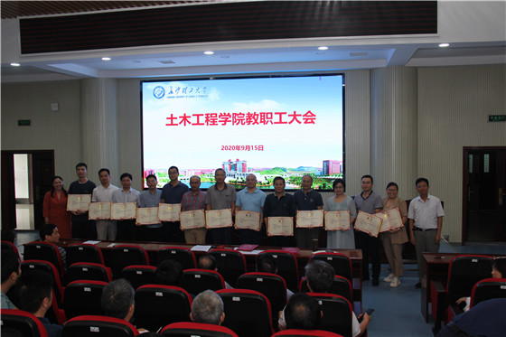 会议分两个阶段进行。第一阶段由学院分管各项工作的副院长就分管工作作有关安排部署。陈伏彬副院长就土木工程专业认证迎评工作提出了有关要求,学生培养质量是专家现场考察的主要观测点,在日常教学工作中务必保质保量,力争顺利通过现场考察。王桂尧副院长强调,继续推进研究生培养导师责任制,努力提高研究生的学术贡献力,加强研究生教育教研教改项目的申报与教材的编写出版工作。蒋友宝副院长就2021年国家自科项目的申报工作进行了动员,并向教职工传达了学校新的科技成果转化政策。黄阿明副书记通报了新生开学报到的有关准备情况,并主持了本科生新生班主任的聘任仪式,聘任陈历强等17名老师担任2020级新生班主任,充实了班主任队伍力量。