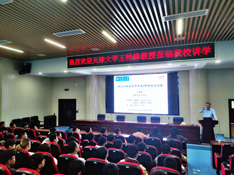 11月12日上午,受土木工程学院邀请,天津大学力学系王艳锋副教授莅临我校工科二号楼B302学术报告厅,作了题为“耦合共振波导中声波/弹性波的传播”的学术报告。报告会由学院副院长蒋友宝教授主持,副院长韩艳教授以及多位老师、研究生共140余人参加报告会。