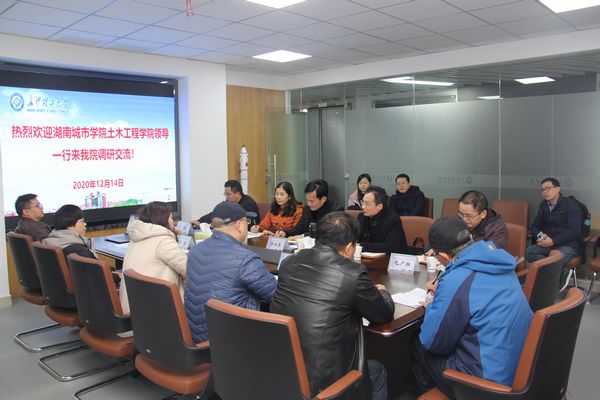 12月14日下午,湖南城市学院土木工程学院院长曹国辉、党委书记郭白泉一行8人来我院交流调研。院党委书记丁丹、副院长韩艳、副院长陈伏彬以及实验室主任等在学院会议室与来访的客人进行了座谈交流。座谈会由副院长陈伏彬主持。