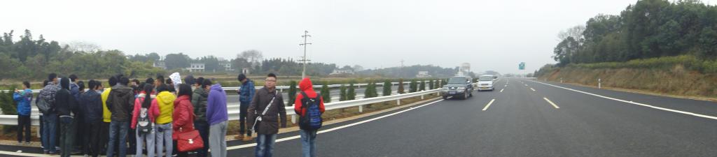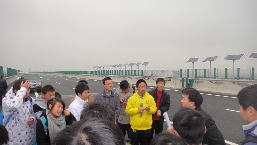 2012年12月14日下午,2012级桥梁卓越班班主任杨美良教授带领全班同学去长湘高速公路进行考察。欧监工先跟学生强调了安全制度,再开始讲述这个桥的基本情况,道路绿化种植带刺植物以防横跨,周边结合当地情况设置了人行道等。还重点讲述排水系统的重要性。之后乘车来到一个隧道,欧监工又就该隧道说明了不稳定山体的隧道形状设计、护坡的作用、雾路灯设计等。