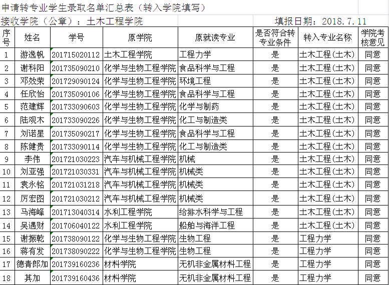 根据《太阳成集团tyc122cc入口本科生转专业管理办法》及《2017级申请转入土木工程学院本科专业遴选办法》,经学院转专业工作领导小组对申请转入学生进行审核,有如下同学拟被录取,公示如下,为期三天,如有异议,请以书面形式报工二A416,电话85256007。