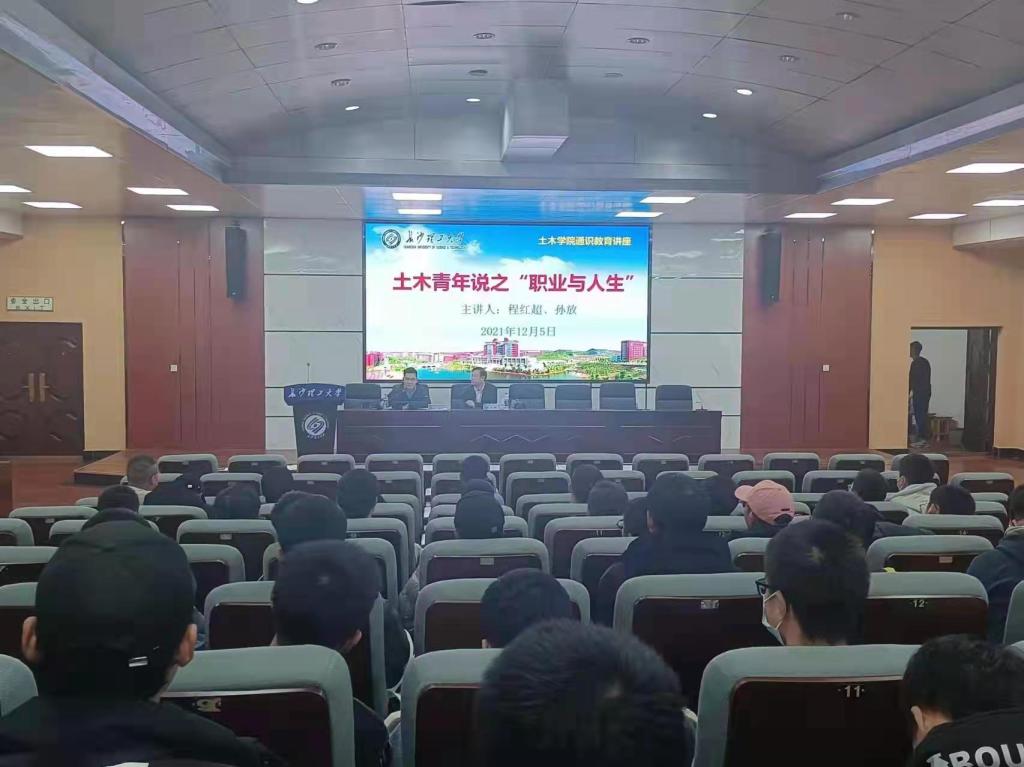 12月5日下午,土木学院在四教报告厅举办了主题为“职业与人生”的通识教育讲座。学院2010届两位优秀校友、九象数字科技有限公司副总经理程红超和九象数字科技有限公司上海分公司总经理孙放应邀主讲,2021级辅导员刘文成、邓文杰及新生代表160余人参加。