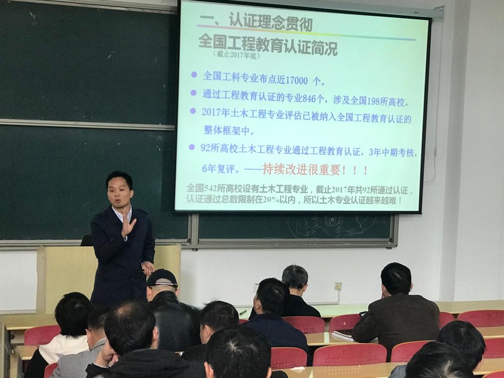 院长助理付果传达了十四届全国土木院长(系主任)论坛精神,做《以工程教育认证为引领的土木工程专业建设与持续改进》的报告,从工程教育认证理念贯彻、基于OBE(成果导向)的教学建设、专业持续改进三个方面进行了阐述,是继上个月全院学习《工程教育认证标准解读》后的又一次对认证理念的深入贯彻与学习。
