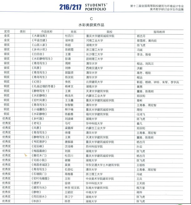 我院学生在全国高等院校建筑与环境艺术设计美术作品评选中喜获水彩银奖