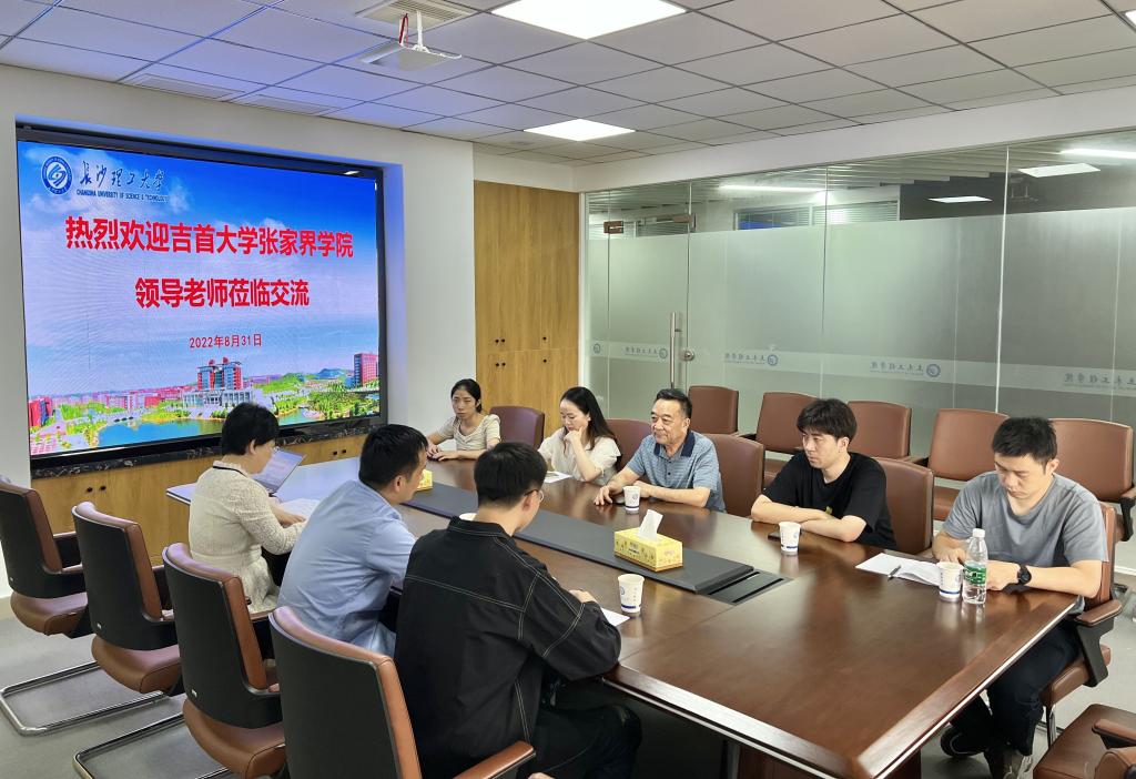 8月31日上午,吉首大学张家界学院张宏教授等一行6人来土木工程学院交流实践教学工作。付果副院长热情接待了来访同仁。