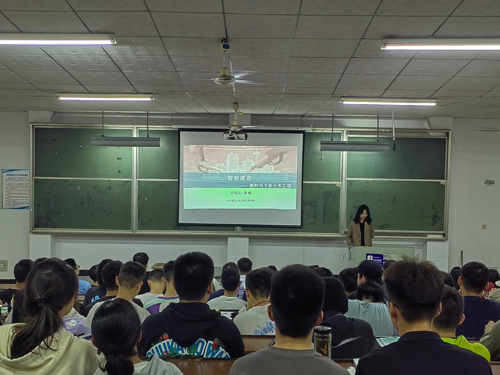 高畅以“智能建造——新时代下的土木工程”为题,围绕“个人经历、求学生涯、土木工程-永恒的学科、新时代的土木工程、智能建造-科学与技术的狠活”四个方面,逐层深入的进行了详细讲解。她主动回应了部分同学对土木工程专业发展的焦虑问题,带领大家领略了新时代土木工程在高性能桥梁结构等技术上的创新突破。最后,她从“专业定义、国家政策、科研方向及工程实际需求”等方面对智能建造专业及人才培养方案进行了详细的介绍和解读。