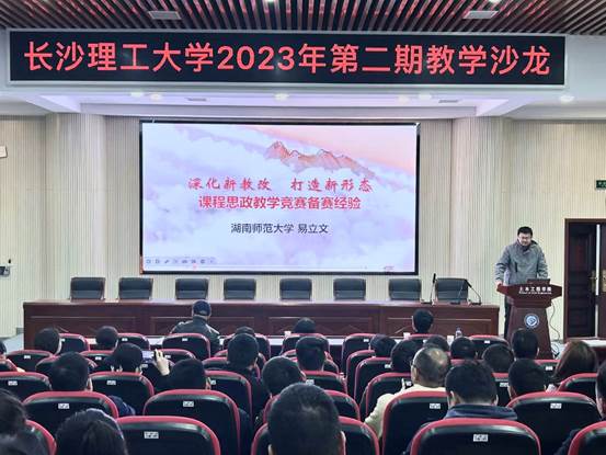 3月28日下午,由教学质量监测与评估中心主办,土木工程学院承办的太阳成集团tyc122cc入口2023年第二期沙龙活动在工科二号楼B302举行,本期沙龙活动主题为“课程思政探讨”,邀请了湖南师范大学易立文副教授和中南大学李烨副教授分别作了题为“深化新教改 打造新形态——课程思政实施案例与备赛经验”和“以课程思政教学竞赛为契机——探讨思政教学设计”的专题讲座。本期沙龙活动吸引了校内各学院80余名教师参加,活动由土木工程学院副院长陈伏彬主持,评估中心贺晖副主任出席了活动。