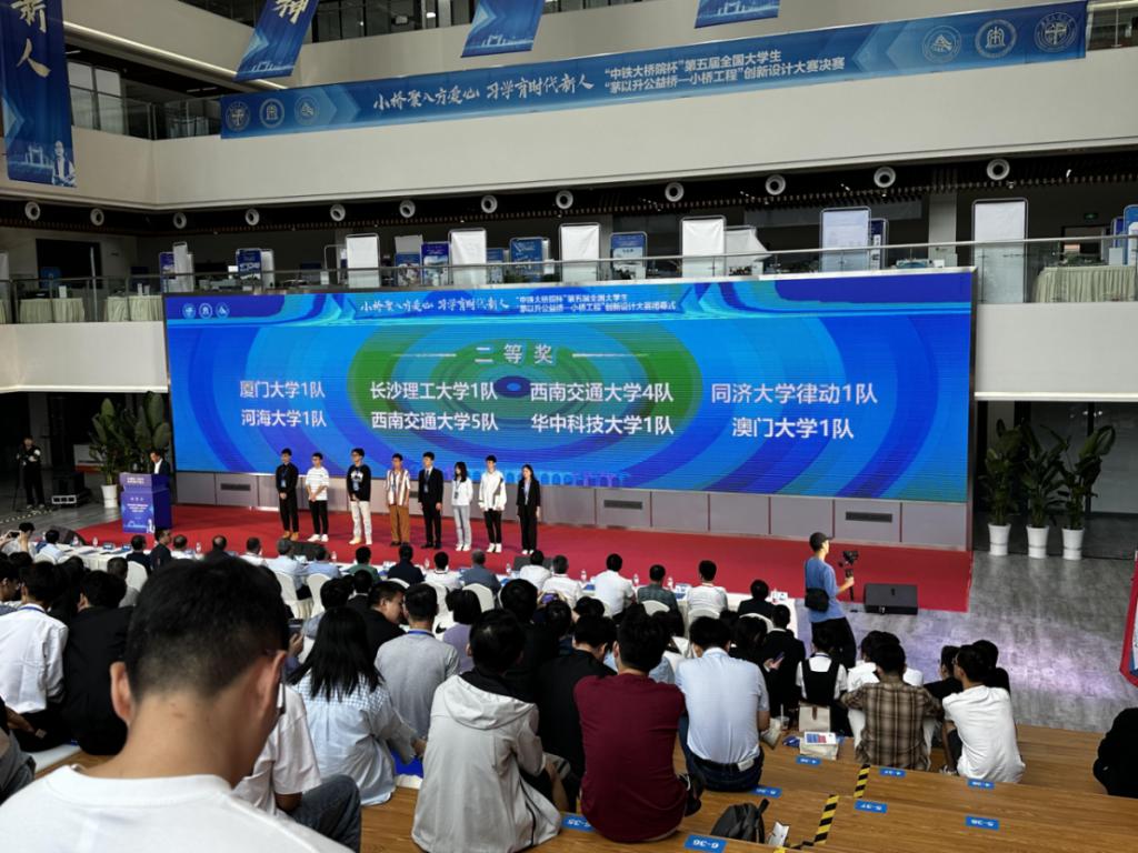 “小桥聚八方爱心,习学育时代新人”——2023年9月21-23日,由北京茅以升科技教育基金会、西南交通大学联合主办,西南交通大学土木工程学院承办的“中铁大桥院杯”第五届全国大学生茅以升公益桥-小桥工程”创新设计大赛决赛在成都西南交通大学犀浦校区圆满落幕。全国大学生茅以升公益桥-小桥工程”创新设计大赛是北京茅以升科技教育基金会联合共青团交通运输部直属机关委员会、教育部高等学校交通运输类专业教学指导委员会共同发起的一项公益慈善建桥大学生赛事项目。本次大赛入围决赛的参赛团队共73组,将近300余人参加线下评审,超过千人参加线上直播。