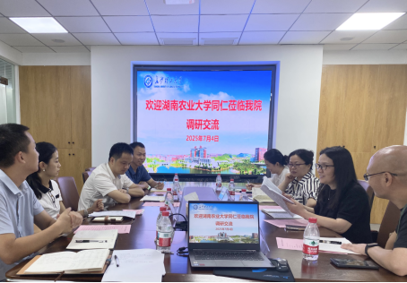 7月4日上午,湖南农业大学水利与土木工程学院副院长周锡玲等一行4人来土木与环境工程学院交流智能建造专业建设工作。副院长付果、系主任鲁乃唯、系副主任黄可、学工办邓文杰老师参加了交流。