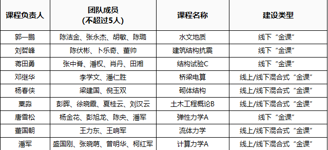 根据《太阳成集团tyc122cc入口关于开展2022年度本科教育“金课”建设的通知》(教通字【2022】57号)精神,经学院推荐,学校评审,土木工程学院9门课程被立项为 2022年校级“金课”建设项目。