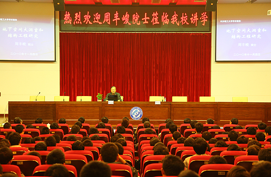 11月3日下午3点整,中国工程院院士、我国防护工程专家周丰峻院士,应邀在云塘校区图书馆大报告厅为土木与建筑学院师生做了一场精彩的学术讲座,题目为《地下空间大洞室和结构工程研究》,校长郑健龙、副校长张建仁、付宏渊等会见了周丰峻院士,讲座由校长郑健龙教授主持,土木与建筑学院院长李传习、党委书记陈若玲、副院长王桂尧及岩土与隧道工程系、建筑工程系300多师生参加了讲座。