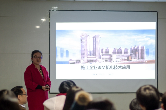 来自湖南建工集团BIM中心业务4处处长张奕君,为我们讲解了BIM技术机电安装中的应用,包括绿色安装,全新的流程与模式和提高企业竞争力。讲解过程中她辅以视频,详细介绍了综合支吊架,管件预制化加工和信息管理建模,加强大家对BIM技术在施工过程应用的认知。