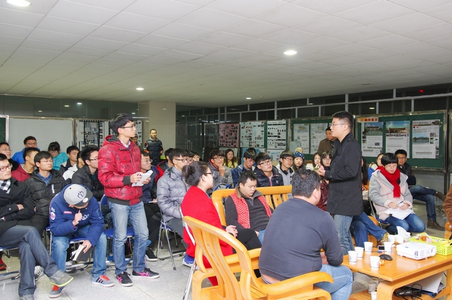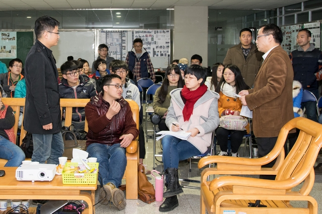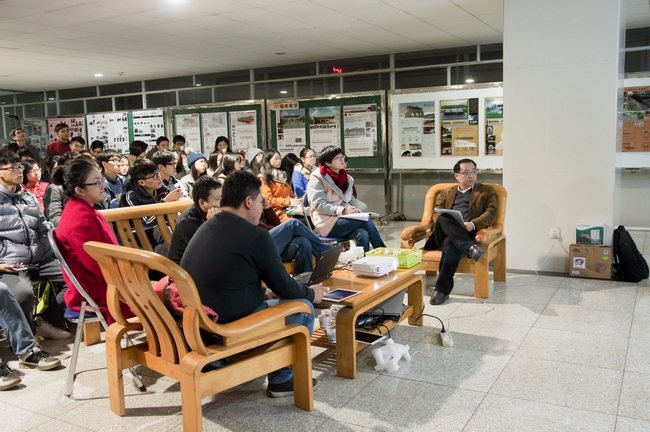 茶歇之中和之后,大家进行了广泛的交流。大家就BIM目前在湖南省的应用情况、高校如何适应这一次BIM技术给建筑行业带来的机遇和挑战、建筑学的学生该如何适应BIM技术给设计学习带来的变化等方面展开了热烈的讨论,上述四位主讲人以及湖南建工BIM中心设计所的所长黄威一起参与了讨论,一一回答师生们的问题。李鹤鸣工程师还就基于BIM的现场放样和测绘与同学们进行了深入的探讨和交流,气氛热烈。