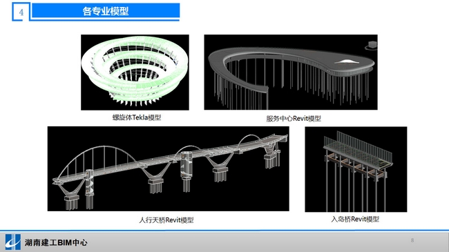 来自湖南建工集团BIM中心工程师李鹤鸣,为我们讲解了梅溪湖城市岛项目钢结构BIM技术应用:通过螺旋体Tekla模型,服务中心,人行天桥,入岛桥的Revit模型等各专业的模型整合,发现并迅速有效的解决了设计或施工中的问题。
