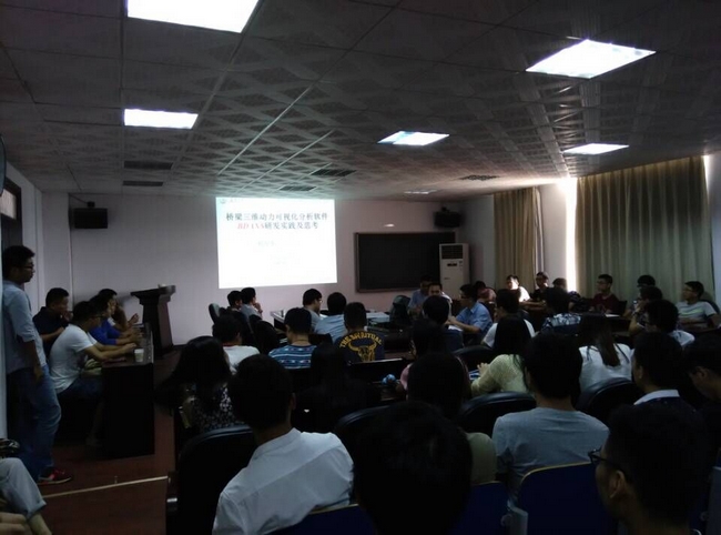 韩教授结合自己的研究之路,与我们分享了其学习和研究要点:打好理论、学好编程、用好有限元。他从“桥梁电算化设计”展开,结合Midas和ANSYS应用情况,介绍了其自主开发的桥梁分析软件BDANS及其相关应用实践。BDANS,即风、地震、随机车流与桥梁交互动力分析软件,这款应用了众多大数据与高端分析模型,经过了极为严谨的编程,可以真实模拟动态车辆经过桥梁时的过程,并在风-汽车-桥梁系统分析与健康监测中都有积极而广泛的应用。诸如上莘大桥,四渡桥等国家大型桥梁工程,都是这款软件的应用工程实例,它们都取得了骄人的成果。接来下长安大学公路学院科研办许老师介绍了长安大学学科建设情况,并与我校本科教学进行了对比,对我校提出了几点建设性的意见,以期促进两校的友好交流合作。