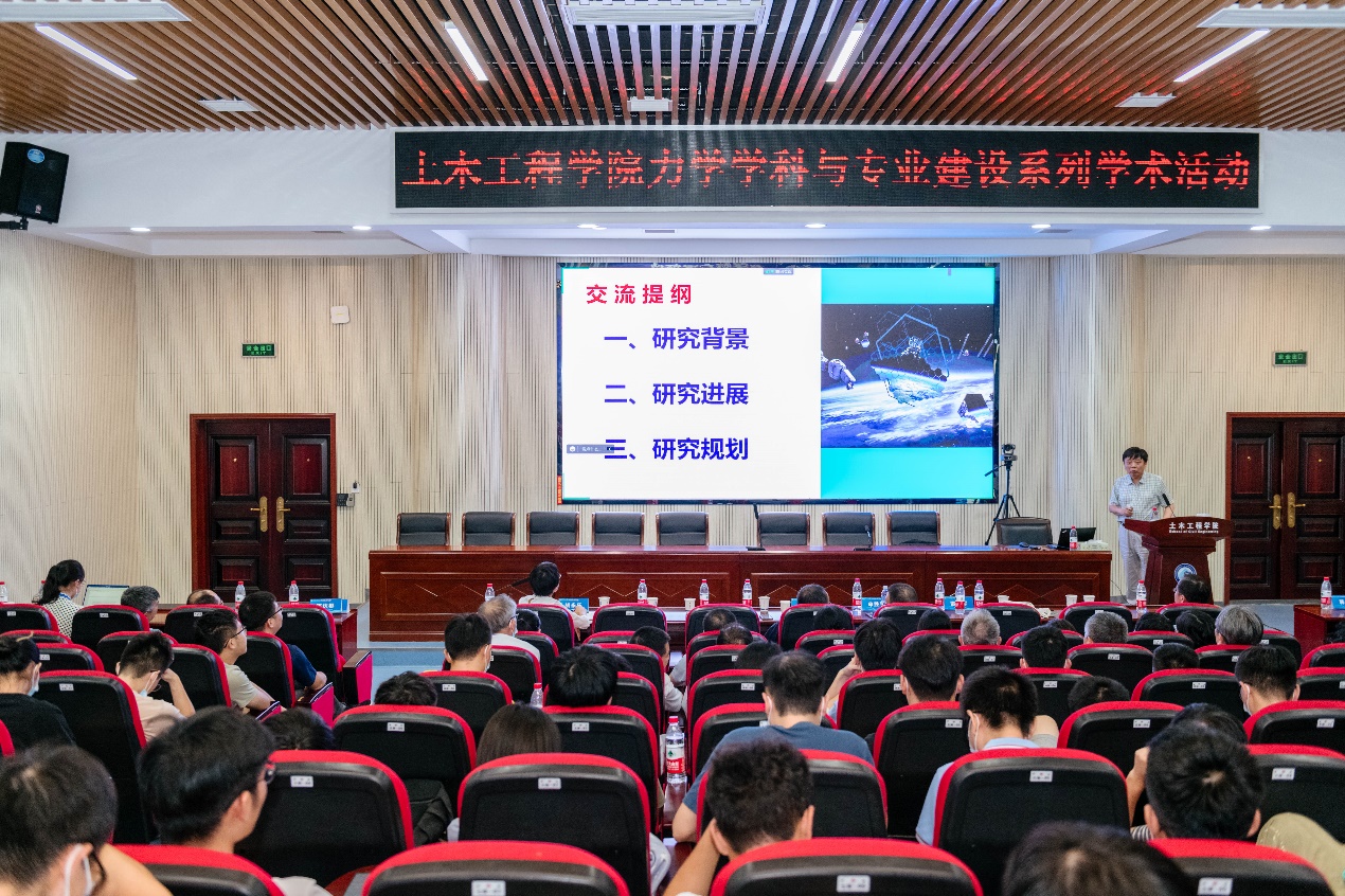 8月8日下午5时,在我校工程力学国家一流专业与力学学科建设发展研讨会上,教育部“长江学者”特聘教授、“复杂系统动力学与控制”工信部重点实验室主任、西北工业大学航空学院院长邓子辰教授应邀作了题为《超大型航天器空间组装动力学与控制》的精彩学术报告。报告由土木工程学院副院长韩艳教授主持,西安交通大学申胜平教授、中国科学技术大学吴恒安教授、湖南大学周加喜教授、土木工程学院多位院领导、力学系全体教师和100余位研究生线下参加了此次报告,部分专家、学者线上聆听了此次报告。