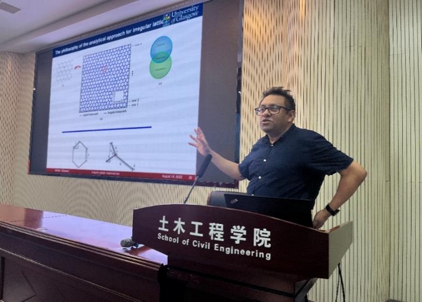 2023年8月16日下午,土木工程学院专业前沿系列名师专题、研究生博力学术论坛之大师引领系列讲座继续举行,英国格拉斯哥大学(University of Glasgow)詹姆斯?瓦特工程学院Sondipon Adhikari教授受邀莅临工科二号楼B302学术报告中心,为师生们做了题为“Dynamics and equivalent elastic properties of regular and irregular cellular metamaterials(规则和不规则多孔超材料的动力学和等效弹性特性)”的学术报告。报告会由学院副院长陈伏彬教授主持,学校学科与规划处副处长蒋友宝教授,刘晓宁、周思阳老师以及100余名研究生参加了此次学术交流会。