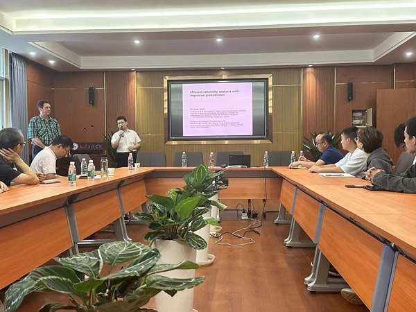 2023年10月1日上午,土木工程专业前沿系列名师专题、研究生博力学术论坛之大师引领系列讲座继续在云塘校区工科二号楼A304学术报告中心举行。德国汉诺威莱布尼茨大学(Leibniz Universit?t Hannover)风险与可靠性研究所所长Michael Beer教授受邀为师生们做了题为“Efficient reliability analysis with imprecise probabilities”的学术报告。报告会由土木工程学院张振浩教授主持,彭建新教授、夏桂云教授等教师以及40余位研究生参加了本次学术交流。