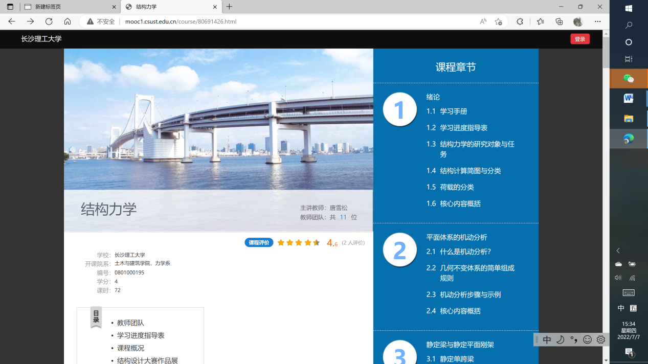 结构力学课程,2014年成为太阳成集团tyc122cc入口首门建成并投入使用的慕课课程,2018年成为门批湖南省精品在线开放课程。