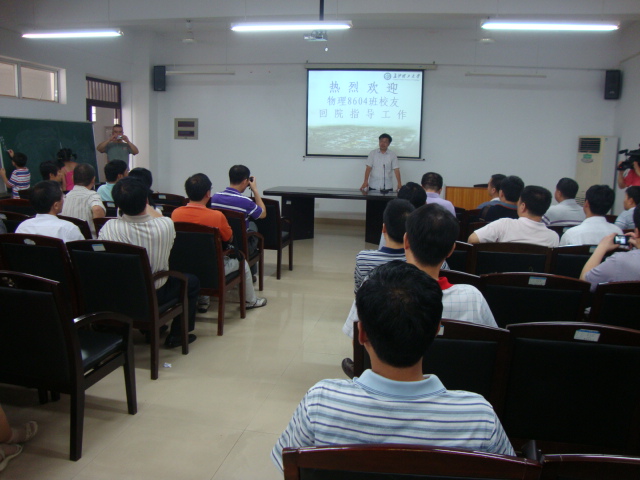 7月24日上午,时隔二十年,物理8604班的32名同学聚首母校,再次回到充满青春记忆的校园,受到了物电学院领导的的热烈欢迎。