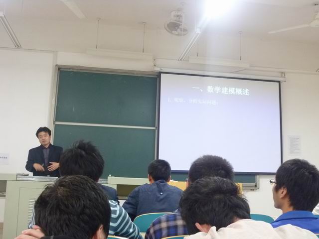 2011年11月4日,历年数模竞赛的优秀指导老师仝青山副教授在理科楼A104为物电学子作了精彩的数学建模知识讲座。出席讲座的有物电学院党委孔凡志副书记,11级辅导员郑忠辉老师,09级、10级、11级物理专业同学,以及其他专业感兴趣的学生代表。讲座由孔凡志副书记主持。