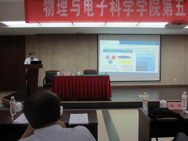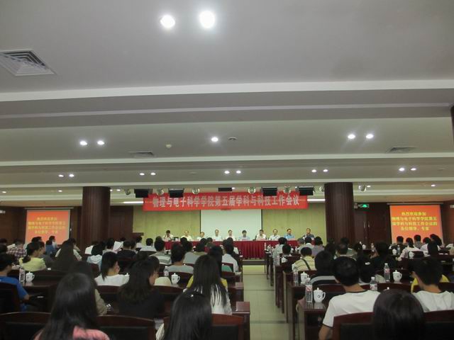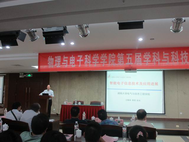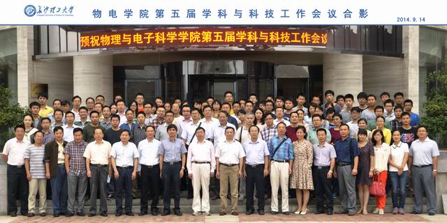 9月14日,物理与电子科学学院第五届学科与科技工作会议在国际交流中心隆重举行。会议包括开幕式、大会报告、分会报告和发展论坛四个议程。湖南师范大学副校长匡乐满教授,湘潭大学副校长周益春教授、湖南大学电气与信息工程学院院长王耀南教授,湖南大学计算机与通信学院院长李仁发教授出席会议并做大会报告和主题发言,学院肖伏良教授、张振华教授做了大会报告,湛雪辉博士做了国家自科项目申报专题报告。我校副校长张建仁教授出席并讲话,正校级督导刘建国教授出席并致欢迎词。物电学院全体教职工、研究生及部分优秀本科生近200人参加了会议。共有28人作了28个报告。