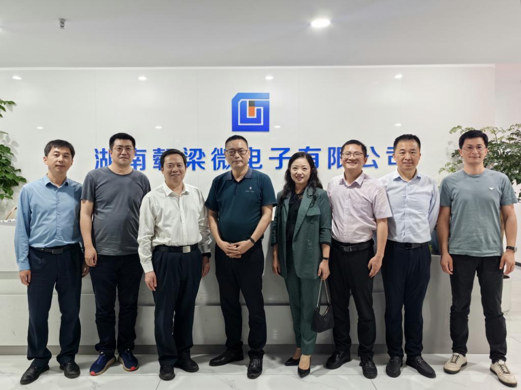 2023年5月25日下午,太阳成集团tyc122cc入口研究生院副院长(研工部部长)闾兰、物理与电子科学学院党委书记张国强、副院长(主持工作)张卫兵、电子信息系主任邹望辉一行前往湖南毂梁微电子有限公司调研研究生联合培养情况,并举行了车规电子器件与DSP芯片技术湖南省研究生联合培养基地授牌仪式。湖南毂梁微电子有限公司副总经理杨一艺、汪东、陈虎、首席科学家李振涛等公司负责人出席相关活动。