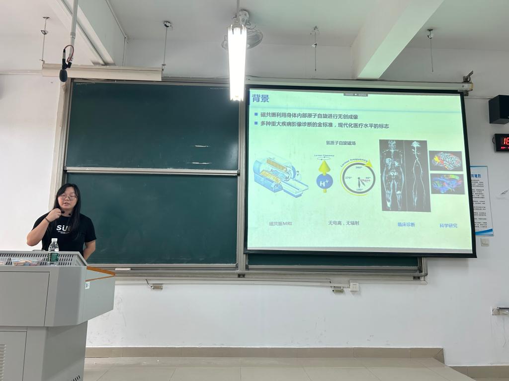 听完之后,同学们都感受到邹博士在这个领域浓厚的知识底蕴,大家激情澎湃,自发响起阵阵热烈掌声。在提问答疑环节,大家依次提出了自己的疑惑,邹博士也耐心的为大家一一解答,加深大家对本次讲座知识的理解。这次讲座激发了同学们对磁共振成像的兴趣,同时大家也学习到了丰富的知识,开拓了视野。