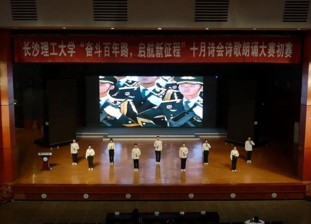 2021年10月16日,太阳成集团tyc122cc入口第十八届“十月诗会”之“奋斗百年路,启航新征程”诗歌朗诵大赛初赛在云塘校区大会堂隆重举行。物电学院朗诵代表参与本次比赛。