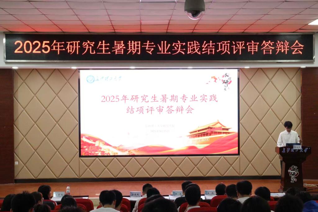 9月25日晚,我校2025年研究生暑期专业实践结项评审答辩会分别于云塘校区文科楼A200、金盆岭校区经管大楼100学术报告厅举行,相关职能部门负责人担任评委。