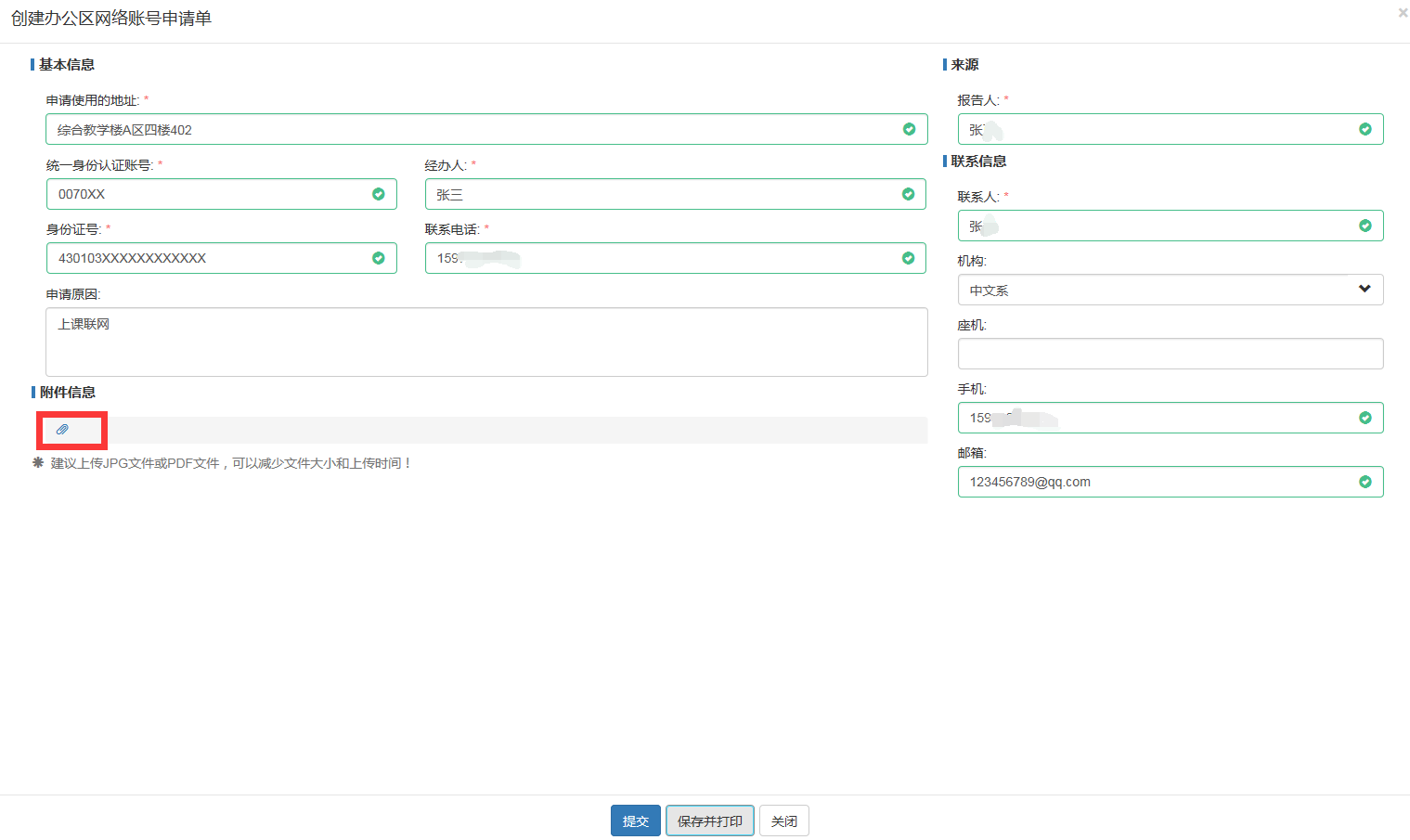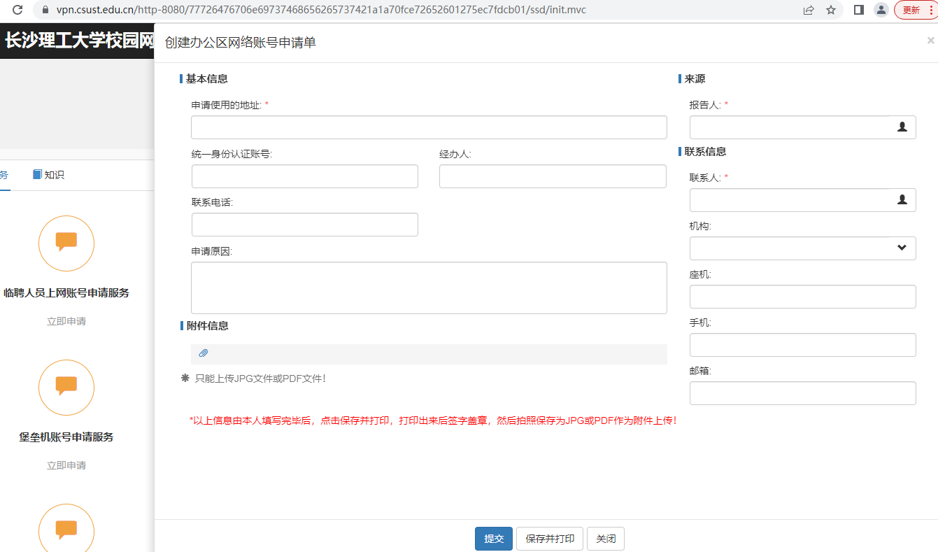 2.3 在弹出页面中填写表格,点击保存并打印,签字盖章