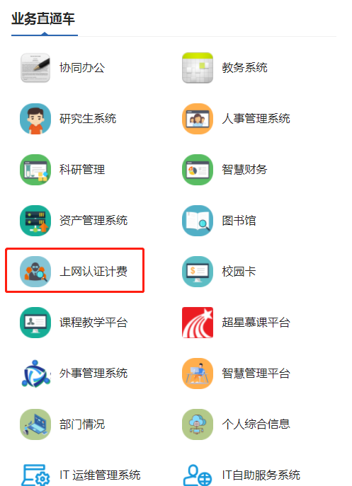 成功登录个人信息门户后,点击右下角“上网认证计费”按钮,如下图。