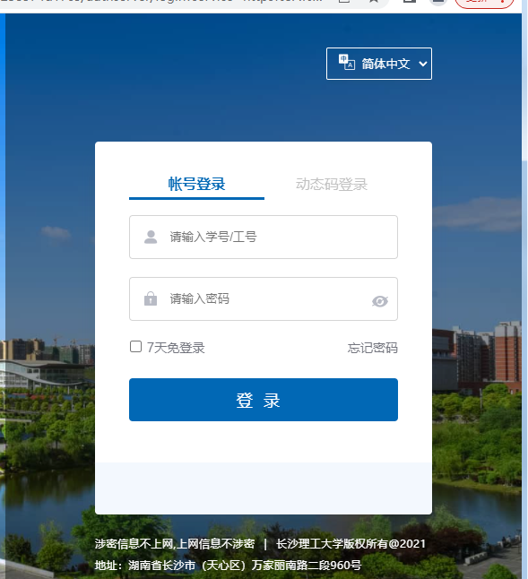 首先,在浏览器中输入地址http://ehall.**.edu.cn/(其中,**表示csust)打开校园门户网站(统一身份认证界面)并登陆。如下图。