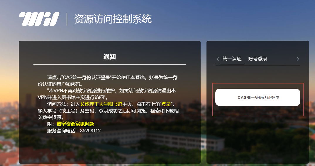 3.2 VPN选择“CAS同一身份认证登录”具体操作如图所示: